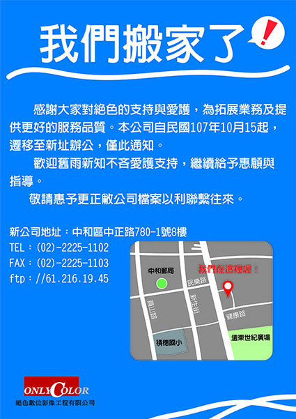 遷廠於新北市中和區中正路780-1號8樓